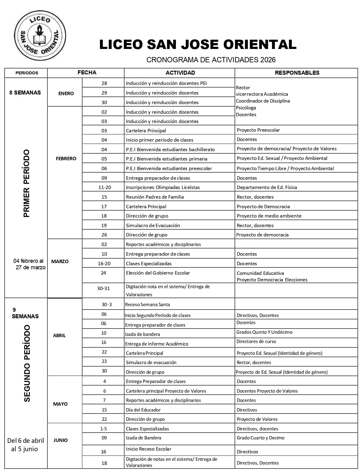 Cronograma de Actividades 2026
