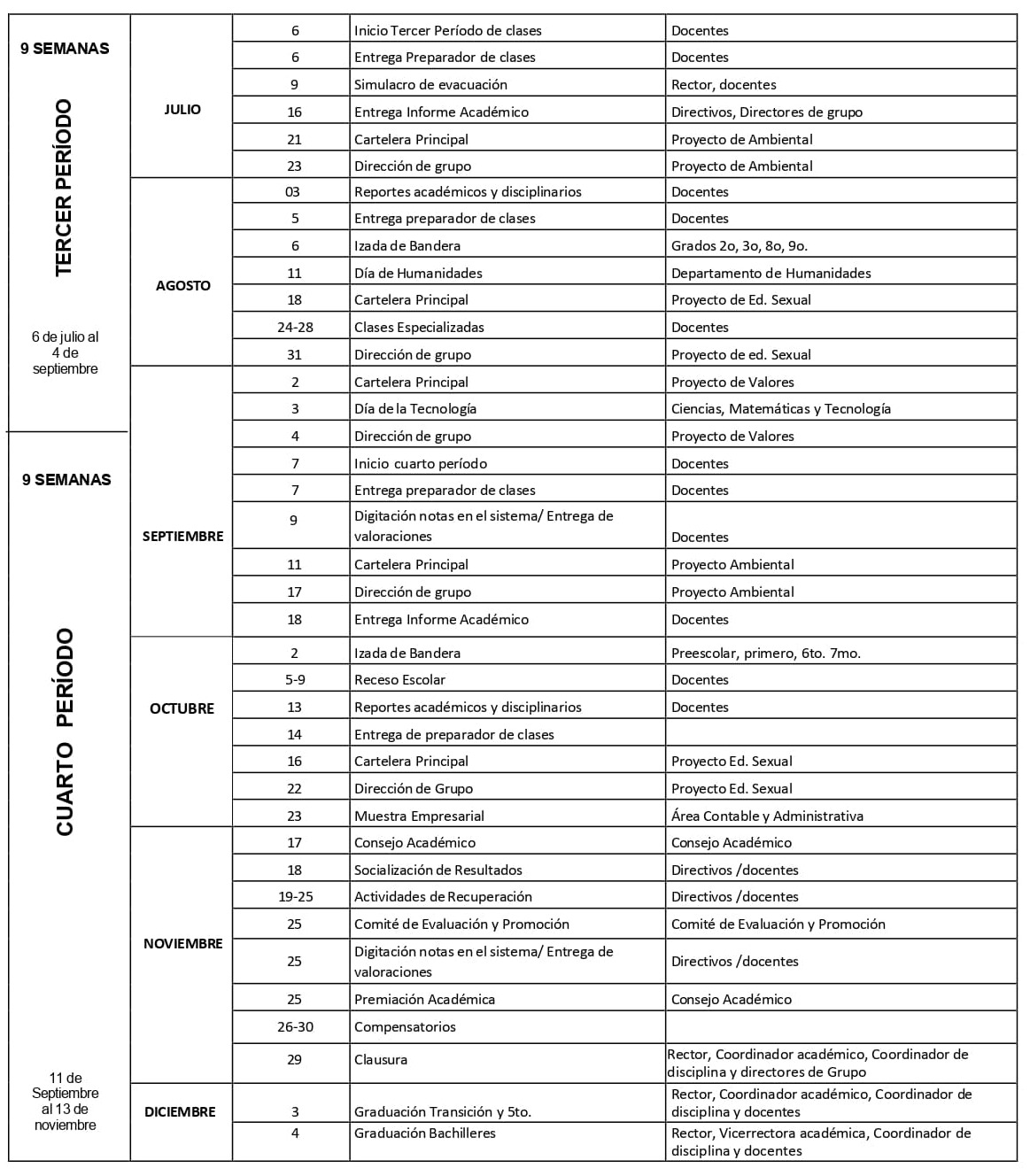 Preescolar, Primaria y Bachillerato Técnico