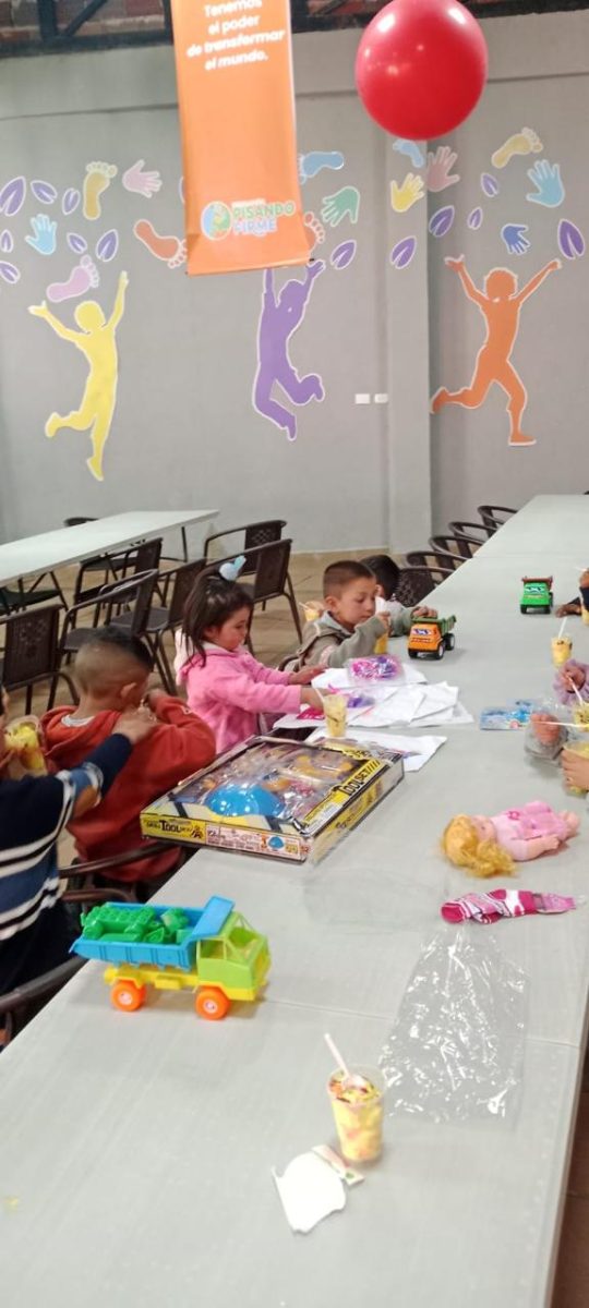 Llevamos música y regalos a los niños y niñas de la Fundación Pisando Firme en Juan Rey – Tihuaque, anticipando la alegría de la Navidad.